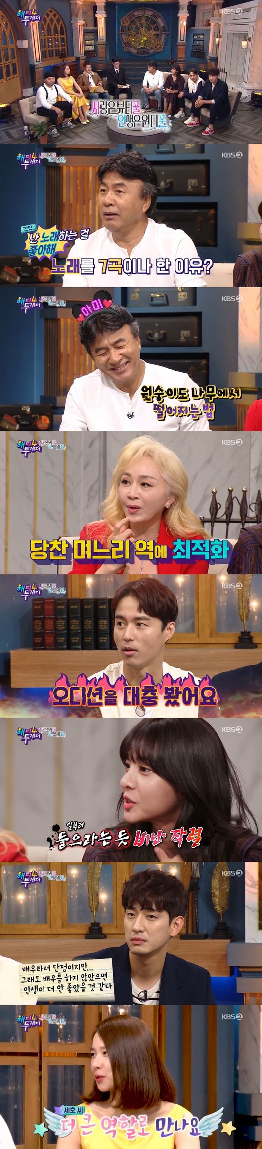 3일 방송된 KBS 2TV ‘해피투게더4’(이하 ‘해투4’)는 ‘사랑은 뷰티풀 인생은 원더풀’ 특집으로 꾸며졌다. 이날 방송에는 ‘해투4’ MC 조윤희를 비롯해 박영규, 박해미, 설인아, 오민석, 윤박 등 ‘사랑은 뷰티풀 인생은 원더풀’ 배우들이 출연해 드라마보다 재미있는 입담으로 시청자들에게 큰 웃음을 선사했다.