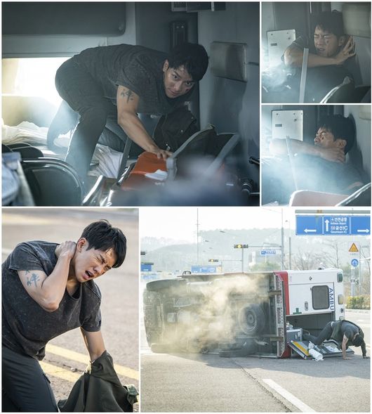 이와 관련 4일(오늘) 밤 10시 방송되는 5회에서는 이승기가 의문의 앰뷸런스에 강제로 실려 가는 일촉즉발 위기 상황이 또 한 번 펼쳐져 충격을 안긴다. 극중 차달건이 도로에 전복된 채 엉망이 돼버린 앰뷸런스 안에 누워 목 쪽에 부상을 입은 듯 부여잡고 극심하게 고통스러워하는 장면. 이내 정신을 차린 차달건은 필사적으로 탈출을 시도하고, 열린 문을 통해 힘겹게 기어 나온 뒤 도로에 무릎을 꿇는다. 하지만 목 부위의 통증이 여전한 듯 일그러진 표정을 지어내 심각한 상황을 예고하고 있다. 몸 성할 날 없는 매일을 보내고 있는 차달건이 이번에는 어떤 일로 극심한 위기 상황을 겪게 된 것일 지, 분노와 아픔이 뒤섞인 고통스러움의 이유는 무엇일지 긴장감을 높이고 있다.