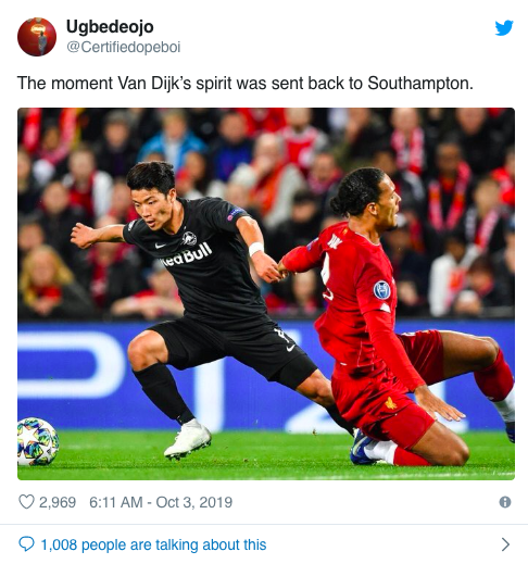 황희찬(23, 레드불 잘츠부르크)의 대활약에 버질 반다이크(27, 리버풀)가 망신을 당했다.