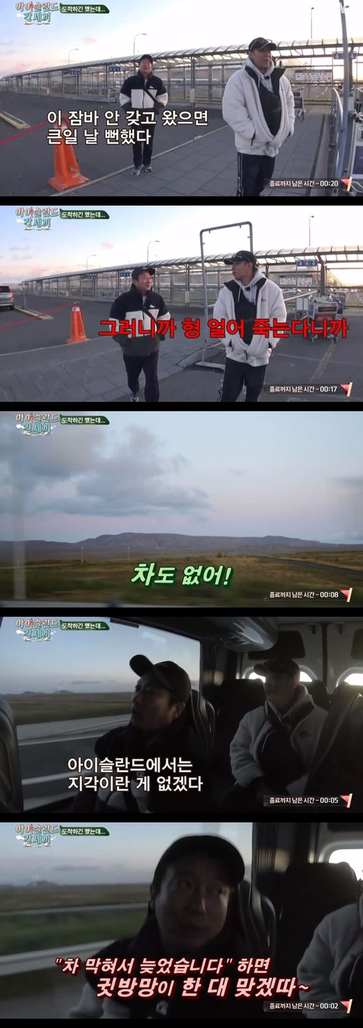 황량한 아이슬란드 풍경을 바라본 이수근은 "여긴 정말 아무 것도 없다. 아이슬란드는 지각이 없을 것 같다. 차 막혔다고 하면 귓방망이를 맞을 것 같다"라고 말해 웃음을 자아냈다.