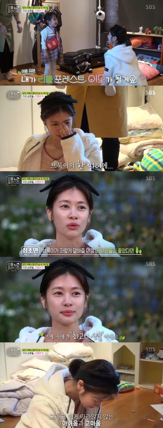브룩은 소민에게 다가가더니 "어른이 되면 내가 리틀포레스트 이모가 될 게요"라고 말했고, 브룩이 한 마디에 정소민이 눈물이 폭발했다. 정소민은 "힘들었고 어려웠던 부분이 있지만 저렇게 말해줄 만큼 이 시간들이 좋았다면 그게 최고의 선물이었다"면서 "그 말로 모든 것이 다 괜찮아진 느낌이었다"며 멈추지 않는 눈물을 닦았다.