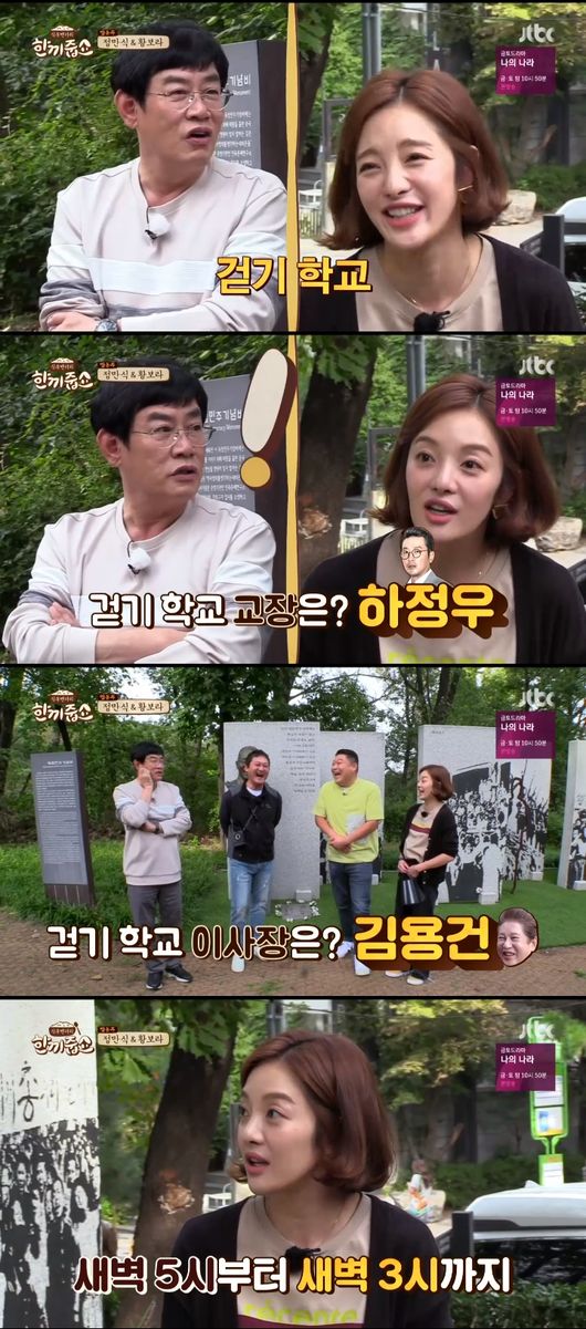 황보라는 “북한산은 쉽다”고 허세를 부리기도 했다. 알고보니 하정우가 교장이라는 ‘걷기 학교’에서 10만보를 걸었다는 것. 황보라는 “새벽 5시부터 다음날 새벽 3시까지 걸었다. 6시간 정도 지나니까 몸이 삐걱거리기 시작했다”고 말해 웃음을 자아냈다.