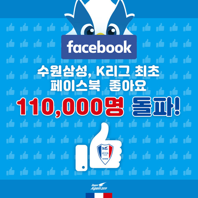 수원 삼성은 10일 보도자료를 통해 "K리그 구단 중 최초로 페이스북 좋아요 수 11만명을 돌파하는 신기록을 달성했다"라고 밝혔다.