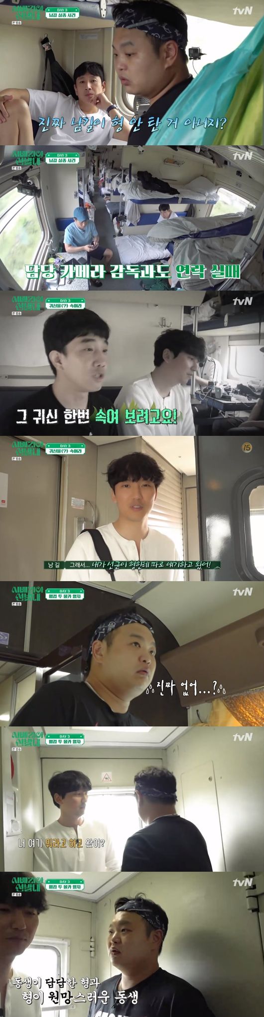 이후 정차역에서 내린 기차에 오른 이선균은 "남길이 어딨냐"고 물었다. 고규필은 화장실 갔겠지라며 대수롭지 않게 생각했다. 하지만 카메라 감독과 김남길 두 사람이 보이지 않는 상황. 김민식은 "몰카 아니야"라며 당황해했고 멤버들은 김남길 찾기에 나섰다.
