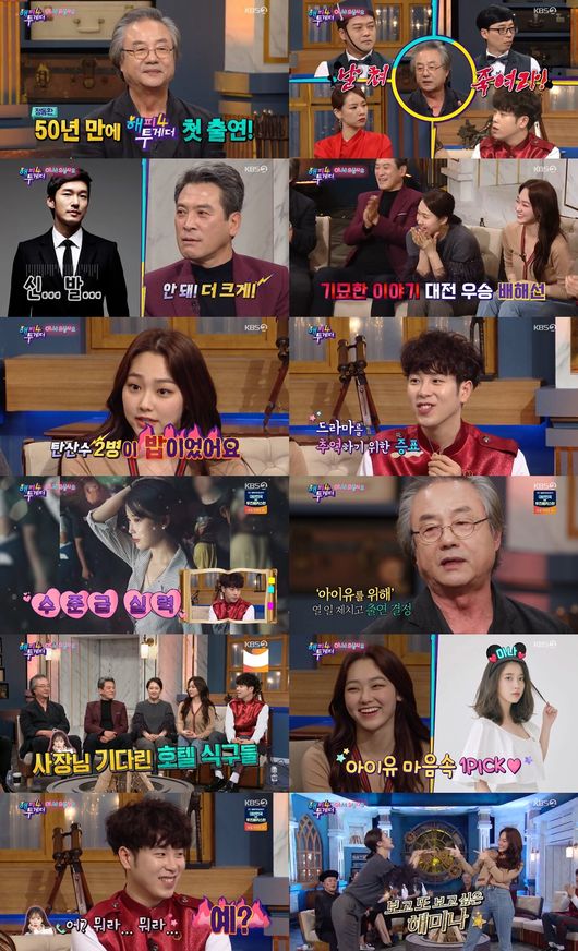 10월 10일 방송된 KBS 2TV ‘해피투게더4’(이하 ‘해투4’)는 ‘어서 오십시오’ 특집으로 꾸며졌다. 이날 방송에는 예능에서 쉽게 볼 수 없는 신기루 같은 예능 레어템 배우 정동환, 남경읍, 배해선을 비롯해 무대, 연기, 예능 등 다방면에서 활약하는 연기돌 미나(구구단)와 피오가 출연해 놀라운 입담을 뽐냈다.
