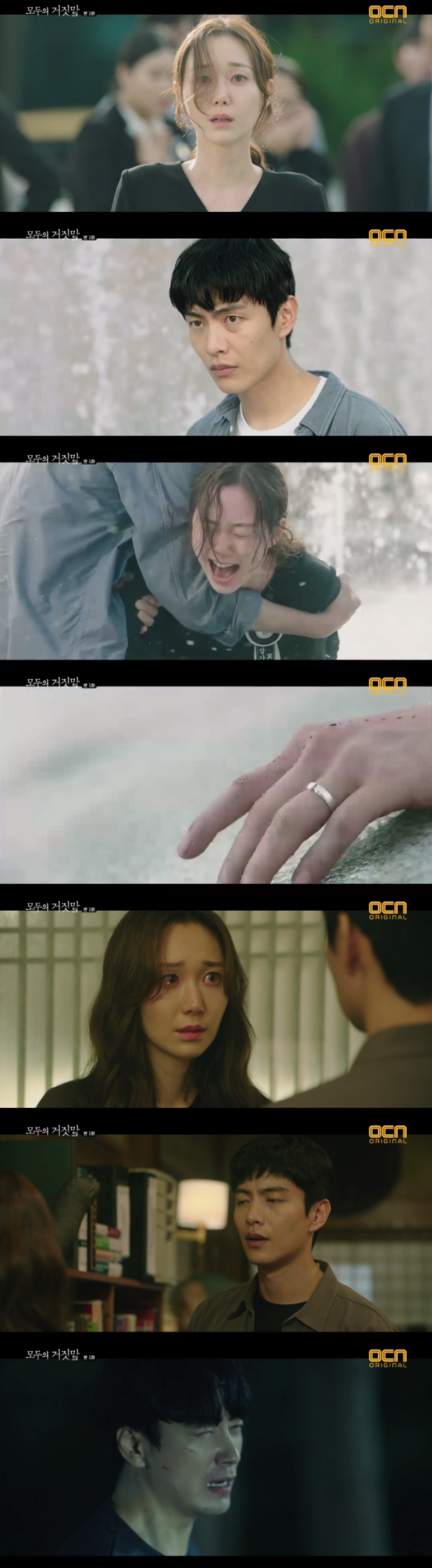 케이블채널 OCN 새 토일드라마 '모두의 거짓말'(극본 전영신 원유정, 연출 이윤정)이 지난 12일 오후 첫 방송됐다. 이날 첫 회에서는 김승철(김종수 분)의 갑작스러운 상황으로 혼란에 빠진 김서희(이유영 분)와 김승철의 사망을 살인 사건으로 판단하고 본격적인 수사를 시작하는 조태식(이민기 분)의 모습이 그려졌다.