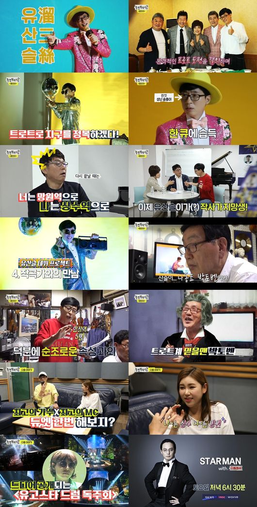 이어진 예고편에서는 트로트 대세 송가인이 등장, 유재석에게 ‘합정역 5번 출구’를 맛깔 나게 부르는 뽕필을 전수하는 모습이 공개됐다. 게다가 두사람의 ‘합정역 5번 출구’ 특급 듀엣이 예고돼 과연 진짜 성사될 수 있을지 관심이 모아지고 있다.