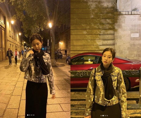 사진 속에서 제니는 재킷에 롱스커트, 스카프를 하고 있는 모습. 무대 위에서와 달리 편안한 옷차림과 내추럴한 메이크업만으로도 제니의 존재감이 빛난다.