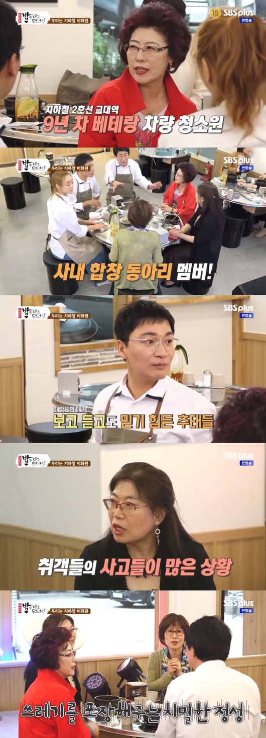 최양락은 "지하철에서 근무하시면 힘들 때가 많을 것 같다"라고 말했다. 이에 여사님은 "취객들이 토해두면 그걸 치우는 게 너무 힘들다"라고 말했다.