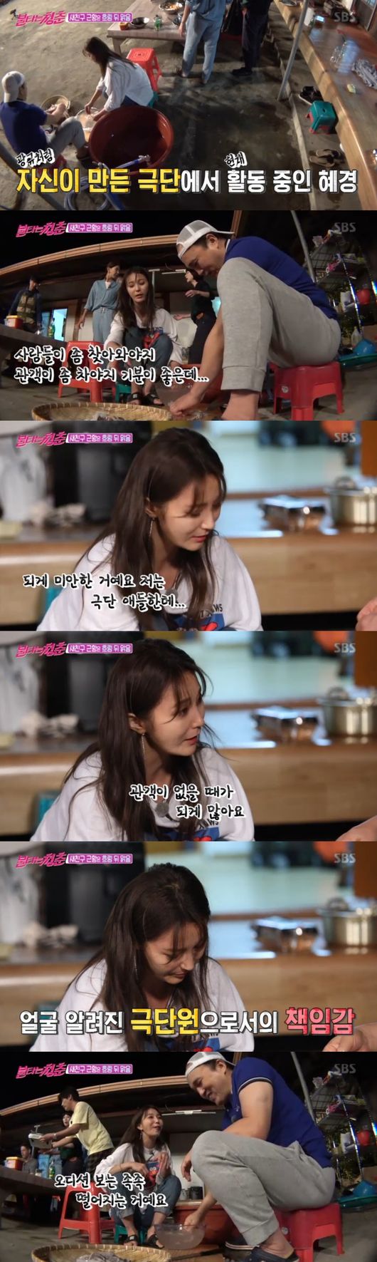 안혜경과 김광규는 연극에 대해 얘기를 나눴다. 자신이 만든 극단에서 현재 활동 중이라는 혜경은 "사람들이 좀 찾아와야 기분이 좋은데, 극단 애들한테 미안하더라"면서 "관객이 없을 때가 많다"며 모두 자신의 탓인 것 같다고 했다. 혜경은 "홍보팀이 따로 없다, 내가 많이 연예계 활동을 못해서 관객이 없는 것 같아 미안했다"며 속마음을 꺼냈다. 얼굴 알려진 극단원으로서 책임감있는 모습을 보였다.