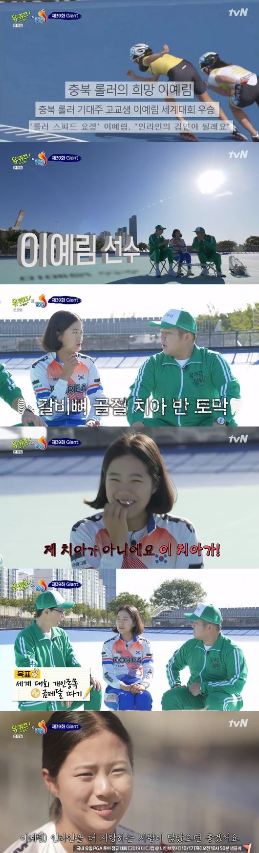 이날 롤러스포츠 스피드 선수인 이예림이 가장 먼저 등장했다. 이예림 선수는 자신을 소개했고 유재석은 경기장을 보며 "잘못하면 크게 다칠 것 같은데"라고 물었다. 이에 이예림 선수는 "갈비뼈 골절 당하고, 앞니도 나갔다. 제 이가 아니다"라며 웃으며 이야기했다.