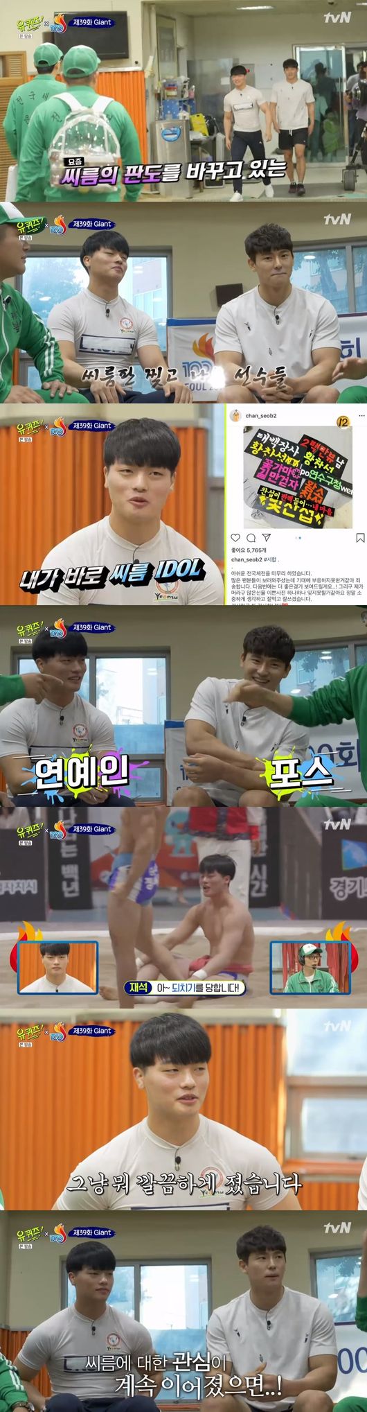 이후 유재석과 조세호는 씨름장을 찾았다. 유재석은 "오랜만에 씨름이 다시 인기를 얻고 있다."며 화제의 두 씨름 선수 박정우, 황찬섭 선수를 소개했다. 두 사람은 "하필 전국체전에서 둘 다 결승에 오르지 못했다"며 아쉬워했다. 이에 유재석은 영상을 함께 보자고 말했다.