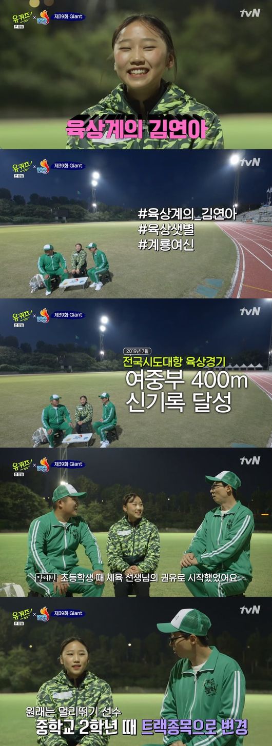 양예빈 선수는 "초등학교 체육선생님의 권유로 운동을 하게 됐다. 멀리뛰기였는데 중학교 2학년 때 트랙으로 변경했다"고 전했다. 이어 유재석은 "큰 경기 끝나고 뭐 먹고 싶냐"고 질문했고 양예빈 선수는 "마카롱과 떡볶이"라고 대답했다.