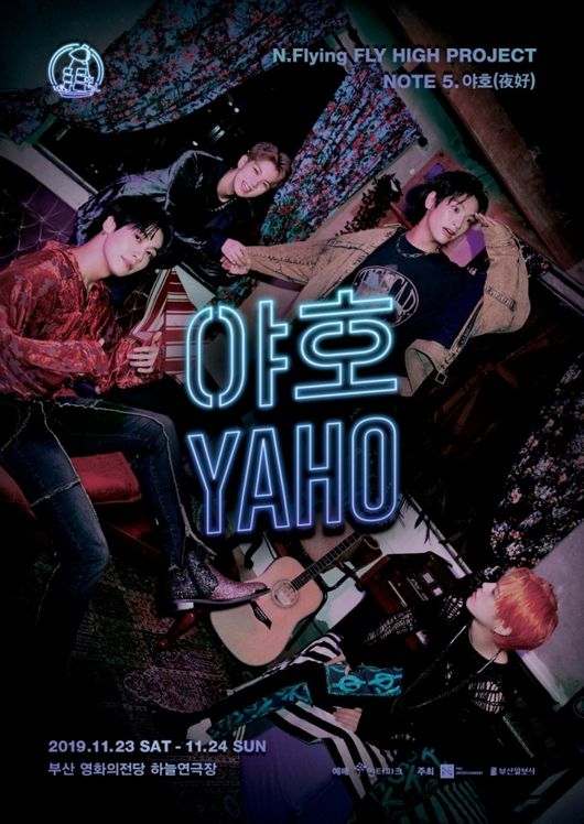 엔플라잉은 내달 23~24일 양일간 부산시 해운대구 영화의전당 하늘연극장에서 단독콘서트 ‘N.Flying FLY HIGH PROJECT NOTE 5. 야호(夜好)’를 개최한다. 엔플라잉의 ‘노트(NOTE)’ 시리즈 공연은 엔플라잉이 진행중인 ‘플라이 하이 프로젝트(FLY HIGH PROJECT)’의 일환으로 지난해 10월부터 이어 오고 있는 단독 공연이다.