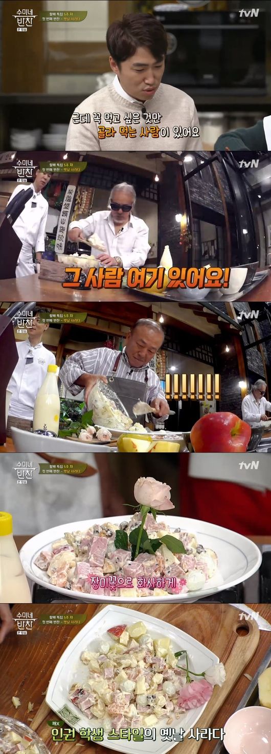 16일에 방송된 tvN '수미네 반찬'에서는 김용건, 임현식, 전인권 할배들이 옛날 사라다 만들기에 나섰다.