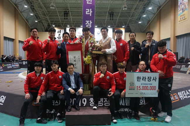 한편, 영암군민속씨름단은 전날 열린 금강장사 결정전에서 최정만이 금강장사(90kg이하)에 등극한데 이어 오창록이 한라장사에 오르며 총 2개의 타이틀을 가져왔다./ 10bird@osen.co.kr