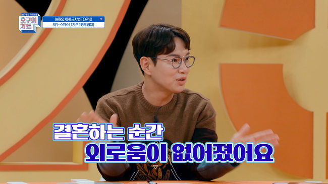 한편, 장성규는 자신을 “외로움을 많이 타는 스타일”이라며 “그런데 결혼하는 순간 외로움이 없어졌다”라고 밝혔다. 이를 듣던 한혜진은 절친 장성규의 사랑꾼 면모를 끝내 참지 못하고 재빨리 다음 순서를 진행해 웃음을 자아냈다는 후문.