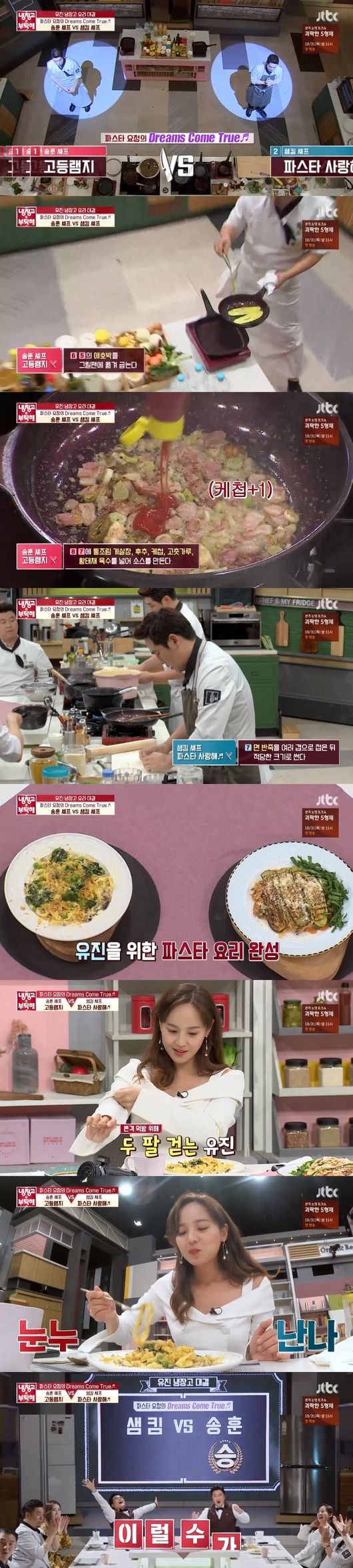 이어 첫 번째, 파스타를 좋아하는 유진을 위한 '파스타 요정의 Dreams come ture,'는 송훈 셰프와 샘킴 셰프의 대결로 펼쳐졌다. 송훈 셰프는 '고등램지'로 오일과 로제 파스타 사이라고 말했고, 샘킴 셰프는 '파스타 사랑해'로 에스카르고를 좋아하는 유진을 위해 에스카르고를 이용한 파스타다. 면을 생면으로 직접 만들거다라고 자신감을 드러냈다.