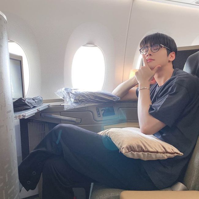 공개된 사진 속 차은우는 비행기에서 다양한 표정과 포즈를 취하고 있다. 차은우는 안경을 착용하는 등 편안한 옷차림이지만 훈훈한 비주얼을 자랑한다. '얼굴 천재'라는 수식어가 아깝지 않을 미모다.