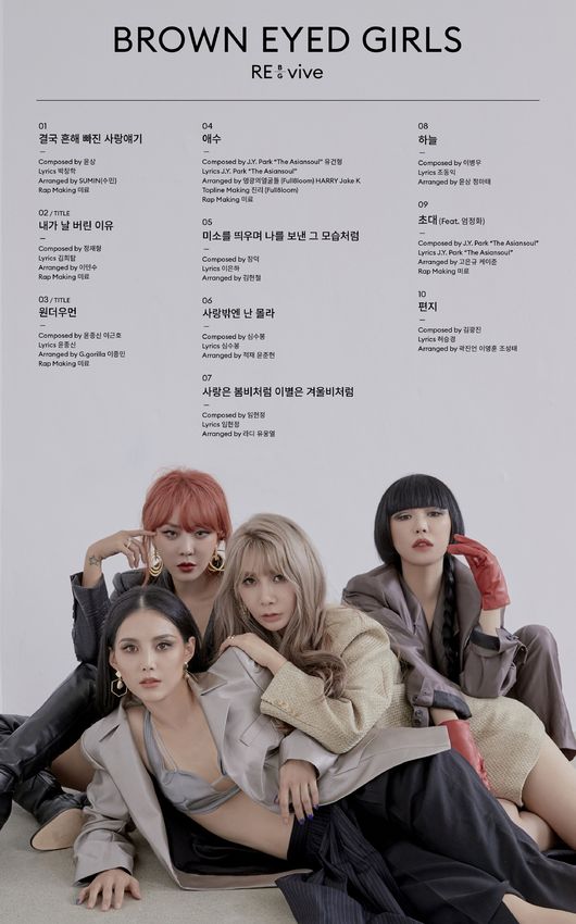 브아걸은 공식 SNS 채널을 통해 새 앨범 ‘RE_vive(리바이브)’ 트랙리스트를 공개했다. ‘RE_vive’는 브아걸의 새로운 시선으로 담아낸 리메이크 앨범으로 총 10곡이 수록됐다.