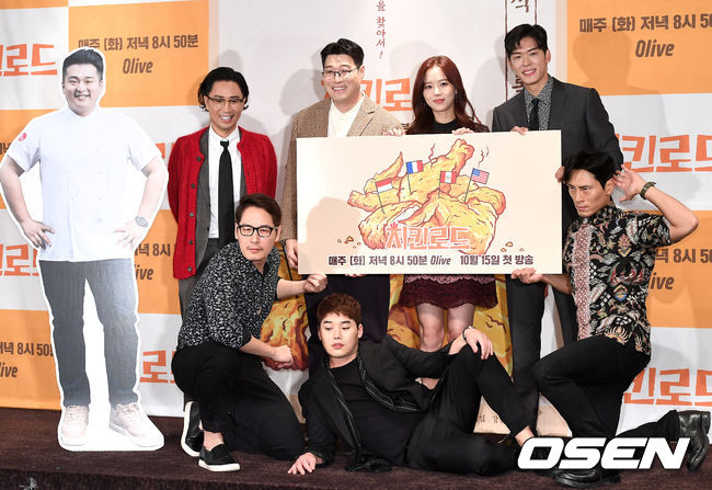 22일 서울 영등포구 여의도 켄싱턴 호텔에서 열린 ‘치킨로드’ 제작발표회에는 박현우 CP와 오청 PD, 김풍, 오세득, 오스틴강, 강한나, 권혁수, 김재우, 정재형 등이 참석했다.