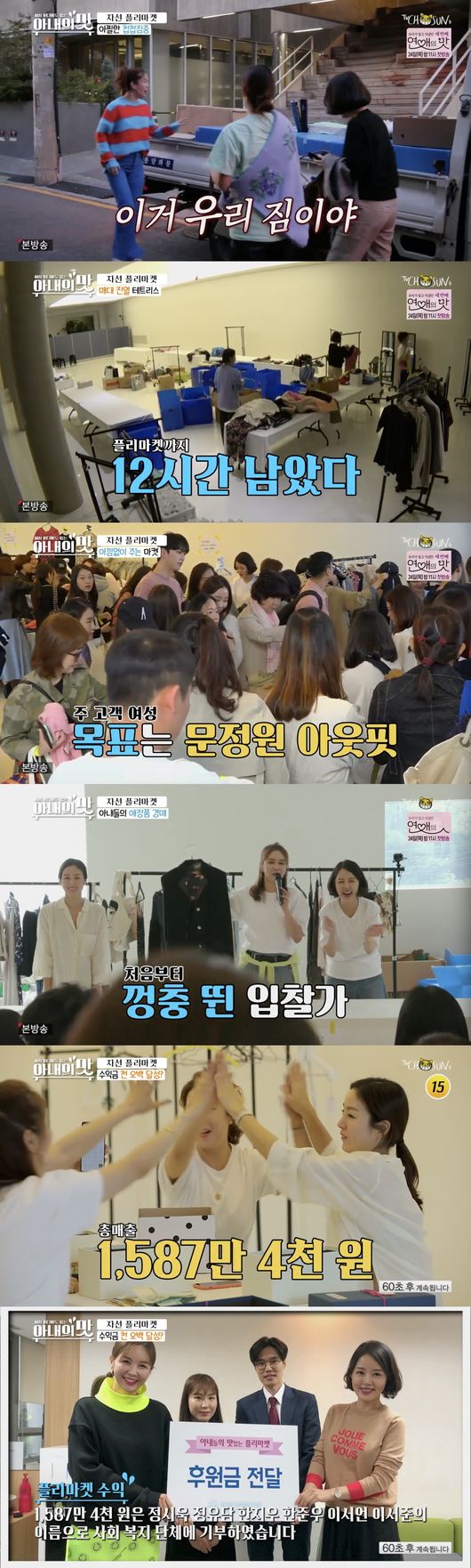 지난 22일 방송된 TV 조선 예능프로그램 ‘세상 어디에도 없는, 아내의 맛’(이하 '아내의 맛')에서는 이하정, 문정원, 장영란이 직접 준비한 플리마켓 현장이 그려졌다.