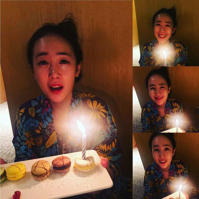 하하는 이날 찍은 별의 사진도 게재했다. 사진 속 별은 생일 초가 꽂힌 마카롱을 들고 기쁨의 눈물을 흘리고 있다.