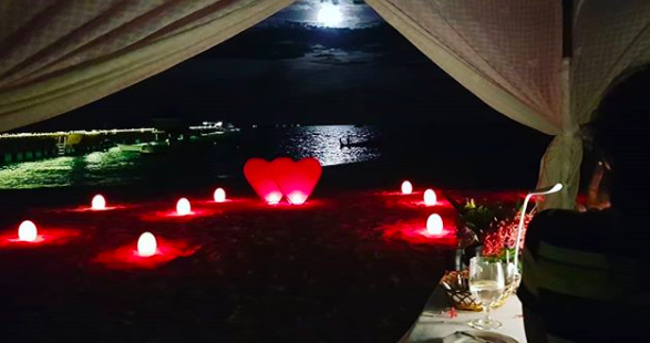 또 강남은 “준비한 디너타임”이라며 “#마지막밤 #한국가요 #비행기 #한국음식 #먹고시포 #부부생활 이제 시작"이라며 이상화의 뒷모습도 공개했다. 조명이 어두워 이상화가 잘 보이지 않지만, 밤바다 풍경을 즐기고 있는 듯하다.
