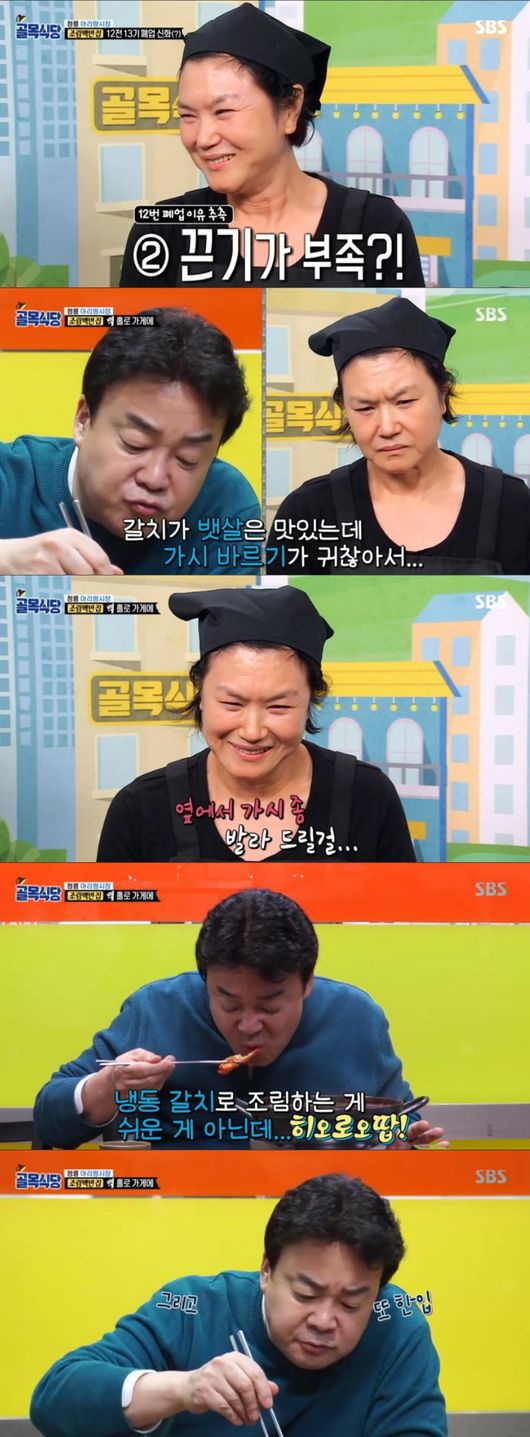 갈치조림이 완성됐고, 사장은 상황실로 이동했다. 사장은 13번 가게를 옮긴 것에 대해 "끈기가 있어야하는데, 손님 없으면 애가 터져, 손니 많은 곳을 찾다가 포기했다, 길어야 1년했다"고 말해 놀라움을 안겼다.