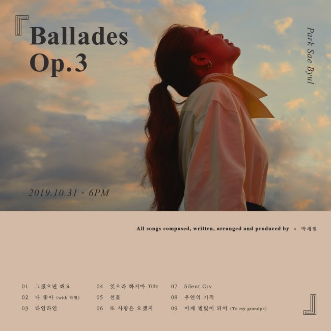 뮤지션 박새별이 새 음반 ‘Ballades Op. 3'의 트랙리스트를 공개했다.