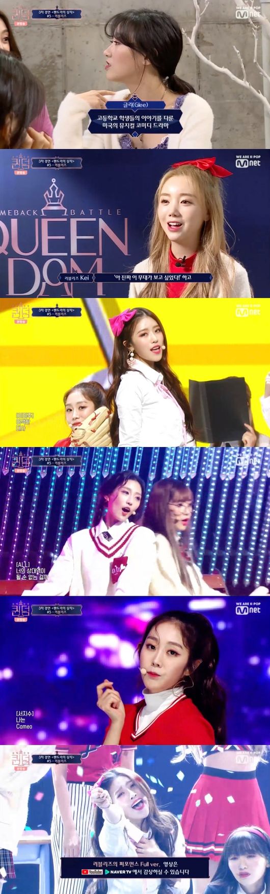 스쿨룩을 입고 등장한 러블리즈는 교실처럼 꾸며진 무대에서 각자 맡은 캐릭터를 완벽하게 소화했다. 여기에 책상을 활용한 군무, 남자 주인공 역할의 댄서까지 더해져 지루할 틈이 없는 무대가 완성됐다.