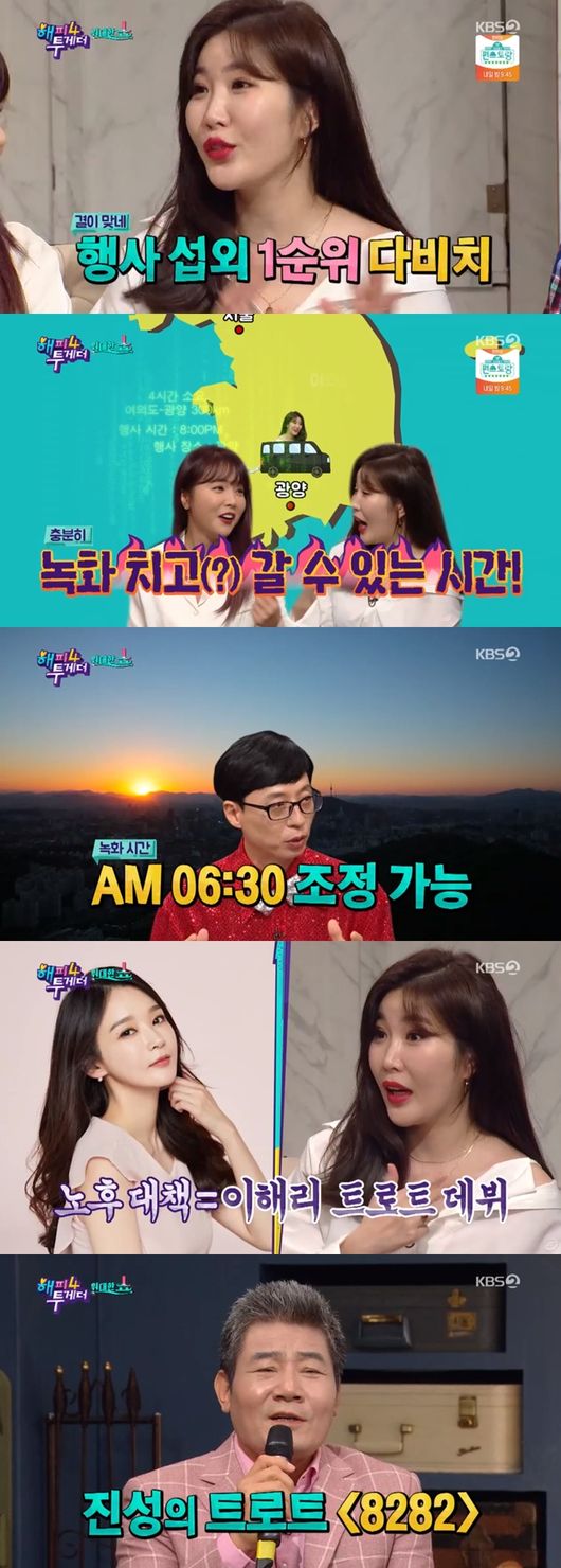 24일에서 방송된 KBS2TV '해피투게더4'에서는 위대한 쇼 특집으로 진성, 홍진영, 다비치 이해리, 허경환, 박서진이 등장해 눈길을 끌었다.