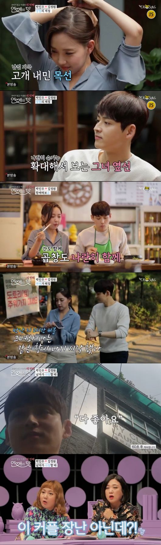 24일 방송된 TV조선 '우리가 잊고 지냈던 세 번째, 연애의 맛'(이하 '연애의 맛3')에서는 이필모 서수연 부부, 장수원, 정혁이 패널로 출연한 가운데, 정준, 윤정수, 강두, 박진우가 소개팅에 임했다.