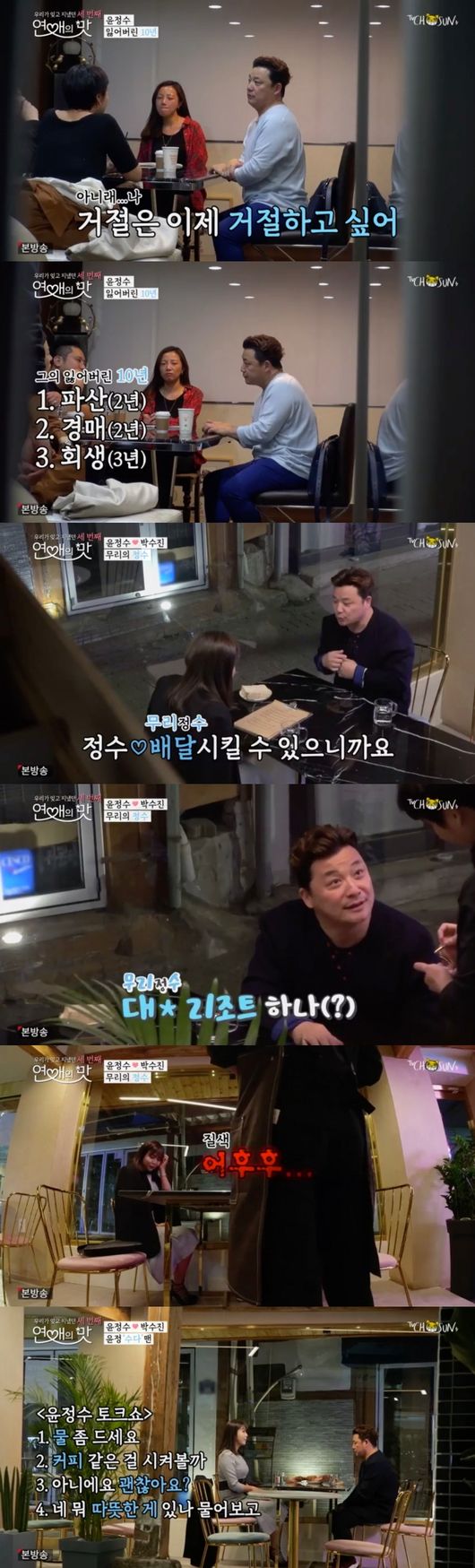 지난 24일 방송된 TV조선 '우리가 잊고 지냈던 세 번째, 연애의 맛'(이하 '연애의 맛3')에서는 이필모 서수연 부부, 장수원, 정혁이 패널로 출연한 가운데, 정준, 윤정수, 강두, 박진우가 소개팅에 임했다.