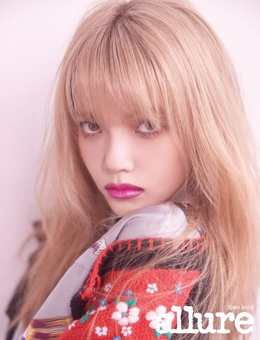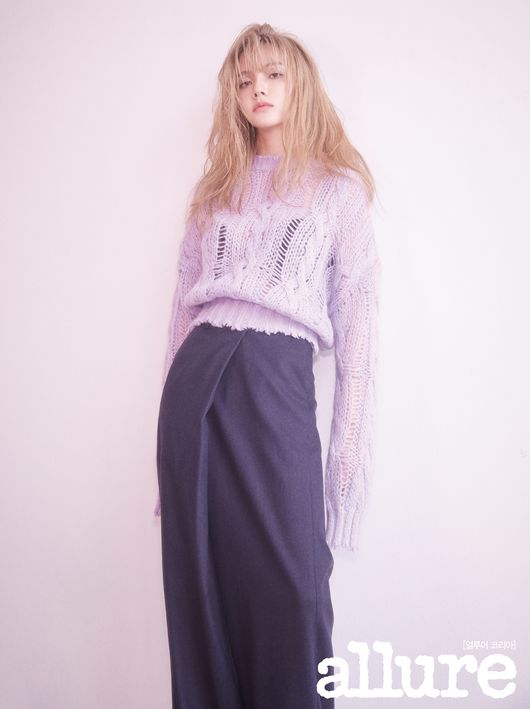 지민은 얼루어 코리아 11월호를 통해 다채로운 모습을 선보였다. 화보에서 지민은 금발 헤어와 바이올렛 니트 착장을 한 채 시크한 분위기를 자아냈다.