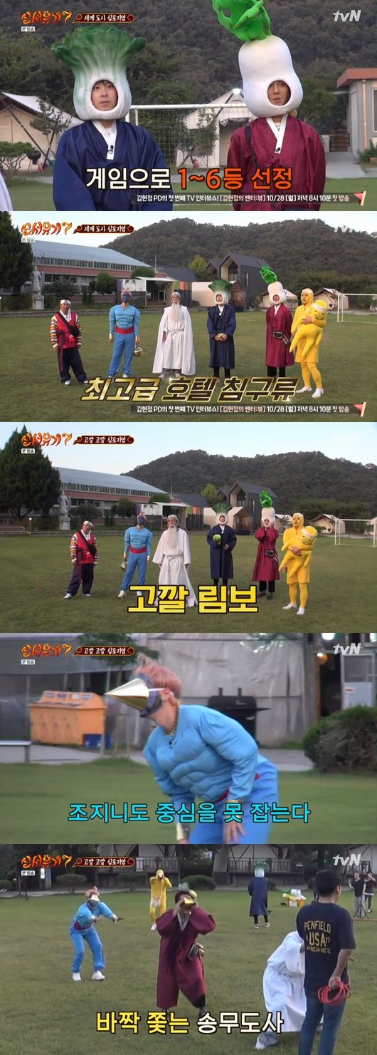 25일 첫방송된 tvN '신서유기7'에서는 도사들이 고깔림보와 고깔축구 경기로 웃음을 자아냈다.
