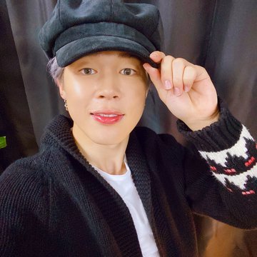 공개된 사진 속에는 지민이 셀카를 촬영 중인 모습이 담겼다. 연보라색 헤어스타일로 비주얼을 뽐내고 있는 지민은 모자 등 다양한 아이템으로 패션 센스를 발휘하고 있다. 또한 손가락으로 브이(V)를 그리며 ‘아미’들의 마음을 저격하고 있다.