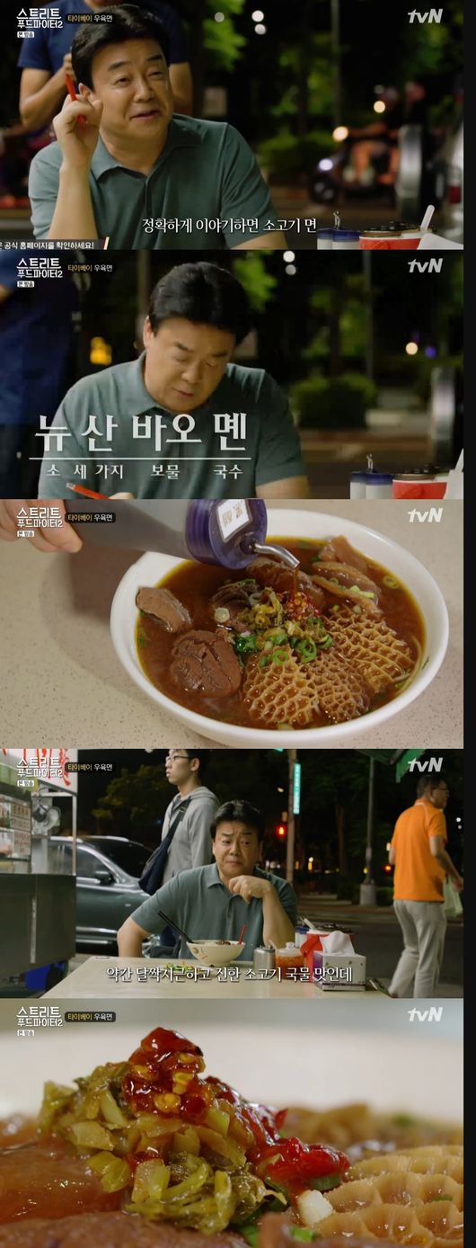 백종원은 우육면을 시식하러 이동했다. 백종원은 "타이베이하면 '뉴러우몐' 정확히 소고기국수"라면서 '뉴샨바오몐'이라는 음식을 주문했다. 백종원은 "소 세가지 보물국수"라고 설명하며 이를 시식, "보물같은 세가지 고기는 사태와 힘줄, 소의 위인 벌집양"이라 설명했다.