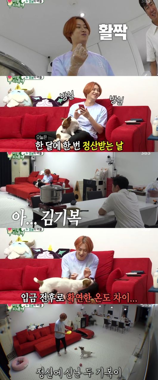 게다가 김희철은 더러워진 주방에 기분이 다운되다가도 한 달에 한 번 들어온 정산 연락을 받으며 급 방긋했다. 입금전후의 확연한 온도차이로 롤러코스터급 감정기복을 보인 김희철이 폭소하게 했다.