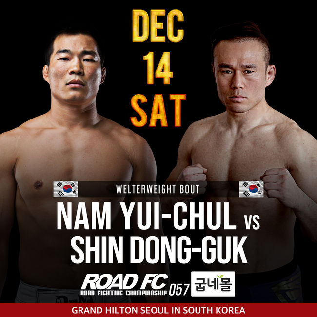 ROAD FC (로드FC)는 12월 14일 서울시 홍은동 그랜드 힐튼 서울에서 굽네몰 ROAD FC 057을 개최한다. 이날 여성부리그인 굽네몰 ROAD FC 057 XX (더블엑스)도 열리고, 대회가 종료된 후에는 시상식과 송년의 밤 행사도 진행된다.