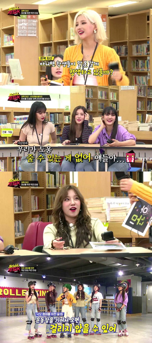또, 롤러장에서 진행된 등교 미션은 롤러스케이트를 타고 술래 등에 붙은 본인 학생증을 떼야 하는 ‘무궁화꽃이 피었습니다’ 게임이었는데, 술래가 쫓아오자 수진은 “난 못 해!”라며 게임 포기 선언을 했고, 슈화는 “잘못했습니다!”라며 석고대죄하기에 이르러 웃음을 안긴다.