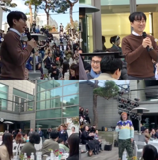 김풍은 28일 자신의 SNS에 “어제의 킬링포인트. 삼행시 타임의 오글거림. 결혼식 축사에 전 여친들 들먹이는 장항준 감독님. 육중완 축가에 리듬타는 침펄”이라는 글과 사진, 동영상을 게재했다.