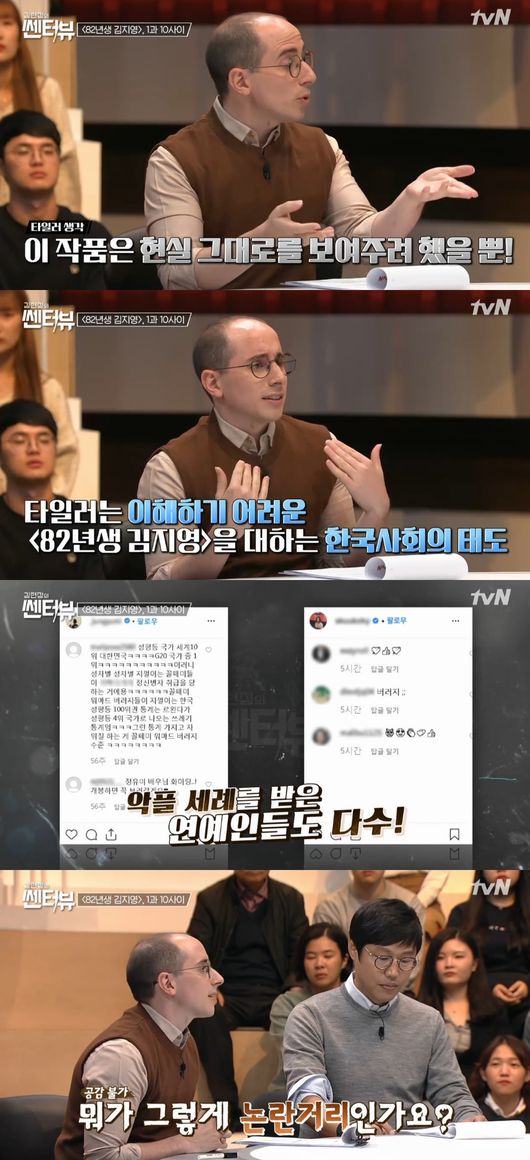 한 작품에 대해 한국사회가 논란을 둘러싸는 것에 대해 타일러는 "이해하기 어려운 현실적인 모습을 그대로 보여줬을 뿐, 뭐가 그렇게 논란 거리인지 공감이 안 된다"고 말했다.