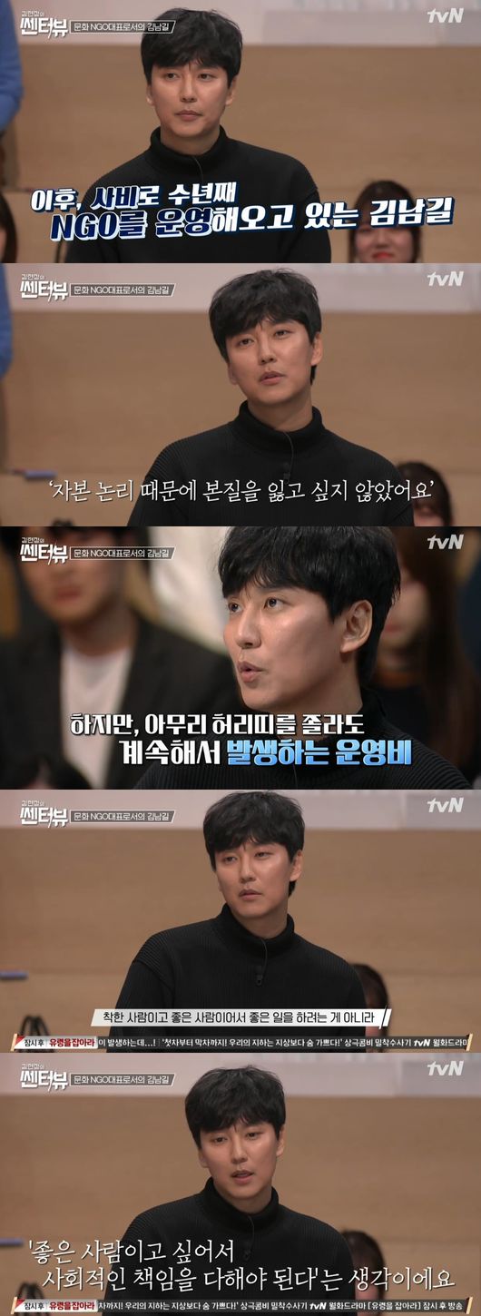 또한 배우가 NGO 대표가 된다고 했을 때 주변 반응에 대해 김남길은 "배우나 똑바로 하지 사람들은 얼마 못 갈 것이라 생각해, 하지만 지금도 사비로 수년 째 NGO 운영해오고 있다"고 했다.