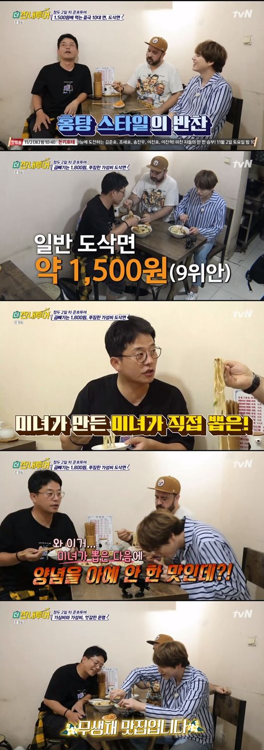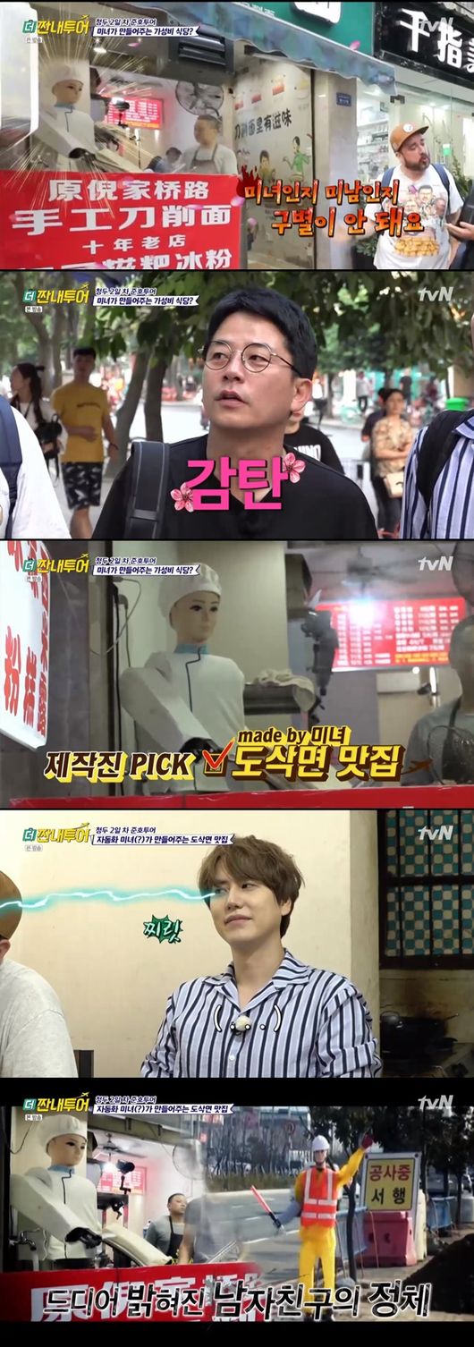 김준호는 "중국의 10대 요리 중 하나인 도삭면으로 유명한 집이다"라고 소개했다. 도삭면은 2천원 정도로 저렴한 가격을 자랑했다. 짜장 도삭면을 맛 본 김준호는 "미녀가 반죽을 하고 간을 안 한 것 같다"라고 말해 웃음을 자아냈다. "규현은 "나름 먹을만하다"라고 평가했다.