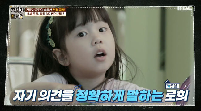 아동심리전문가 손정선 씨는 로희에 대해 “아이큐 127로 이 연령 또래들 중 3% 안에 드는 엄청 똑똑한 아이”라며 “평균보다 지능이 위에 있다. 특히나 언어이해가 좋다”고 했다. 이날 방송에서 유진은 5세가 된 로희와 돌이 지난 둘째 딸 로린이를 최초 공개했다. 해외파 출신답게 외국의 자유로운 교육 분위기에서 자란 유진은 로희에게 빡빡한 교육을 시키고 싶지 않아 고민이 많다며 교육 전문가들에게 SOS를 요청했다.