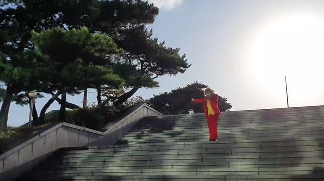 ‘분장 달인’ 답게 디테일이 돋보인다. 조커의 빨간색 수트와 분칠, 과하게 바른 립이 포인트다. 특히 ‘조커’ 속 계단에서 춤을 추는 모습을 완벽하게 재현하면서 디테일을 살렸다.