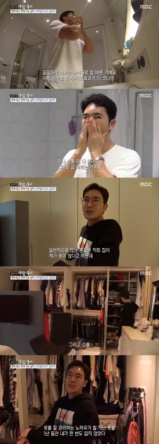 아침 출근을 준비하면서 김우리는 남다른 관리법으로 눈길을 끌었다. 김우리는 "묽은 것부터 떠서 쓰는 묵직한 크림까지 순서대로 발라야 한다"라고 말했다. 이어 김우리는 "스타일리스트라서 옷방이 따로 있을 거라고 생각하는데 나는 그냥 붙박이장만 있다"라며 옷장을 열어 옷들을 보여줘 눈길을 끌었다.