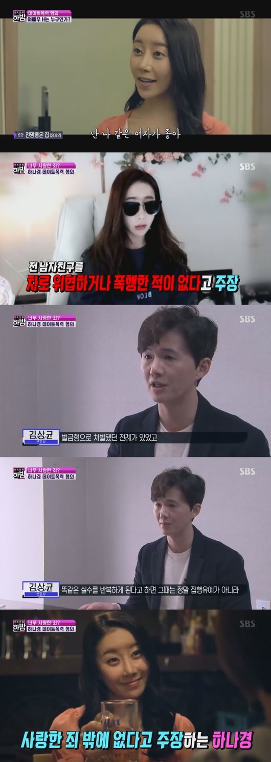 이어 김상균 변호사의 사건 설명이 이어졌고. 하나경씨가 데이트 폭력 이력으로 벌금형을 받은 과거가 있었기 때문에 집행 유예 선고가 된 것이며, 데이트 폭력으로 집행유예가 선고 되는 것은 대단히 이례적인 일이라고 전했다.