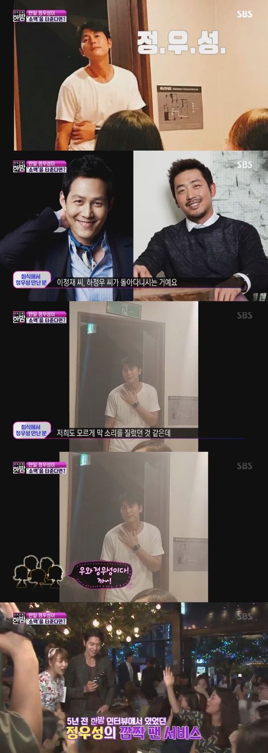 당시 목격자는 "그날 이정재씨, 하정우씨를 식당에서 마주쳤기 때문에 정우성씨도 있지 않을까 싶었는데 정우성씨가 테이블 근처를 지나가는 것을 목격하고 소리를 질렀는데 바로 저희 테이블에 오셔서 특유의 장난스런 얼굴로 술을 따라주셨다"라고 전했다./anndana@osen.co.kr
